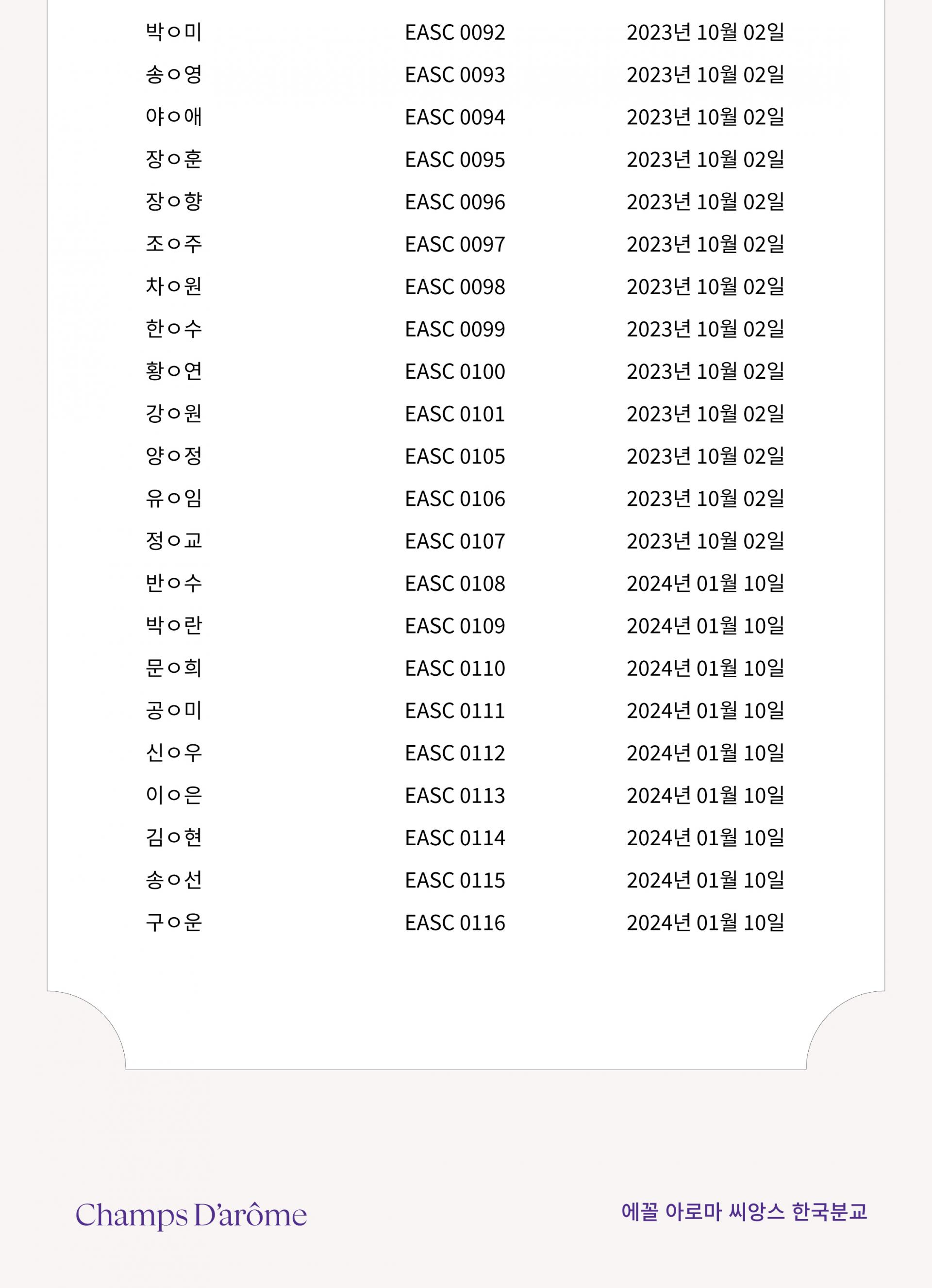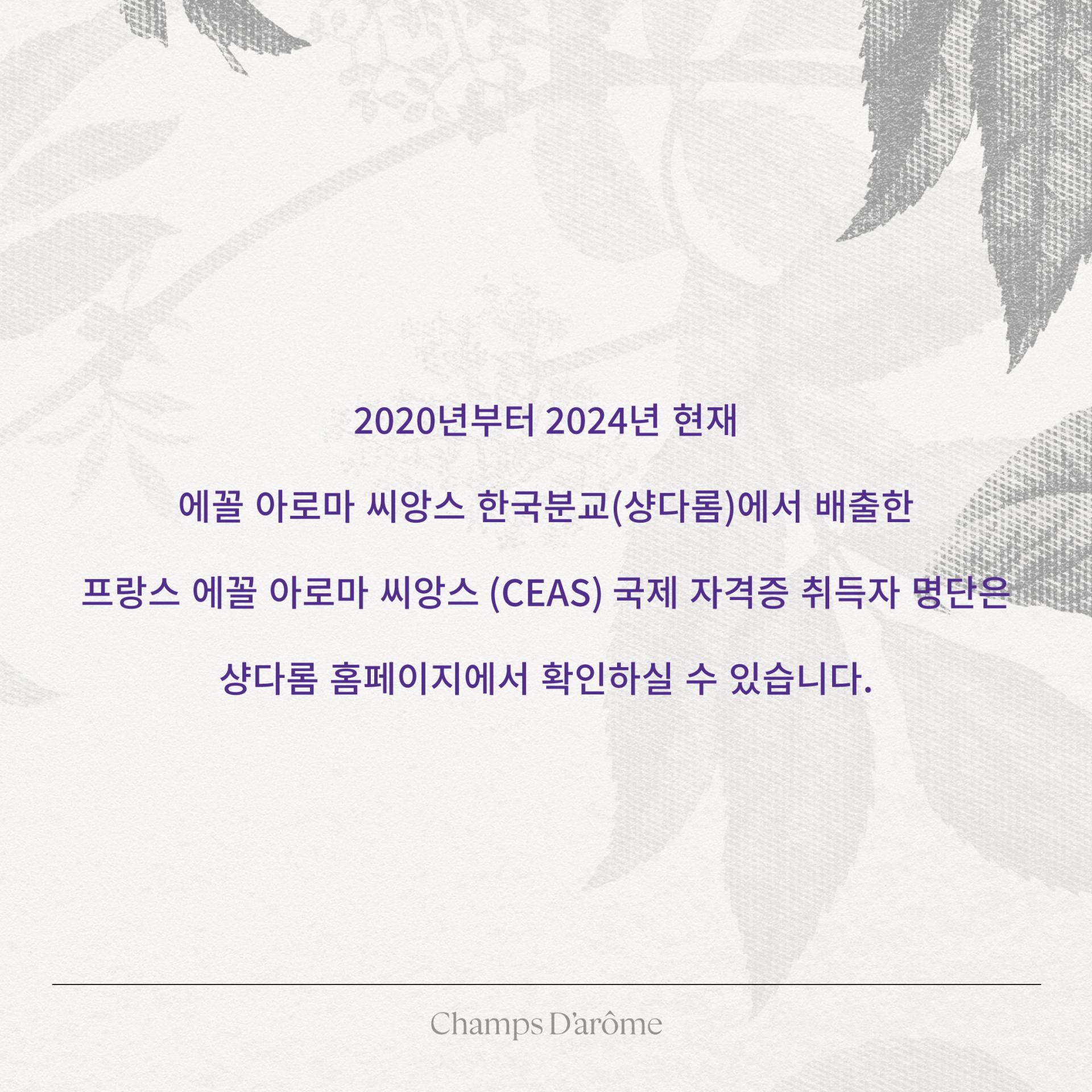 프랑스 에꼴 아로마 씨앙스 Ecole Aroma-Sciences[프랑스 과학적 메디컬 아로마테라피] 국제자격증 취득자 명단
