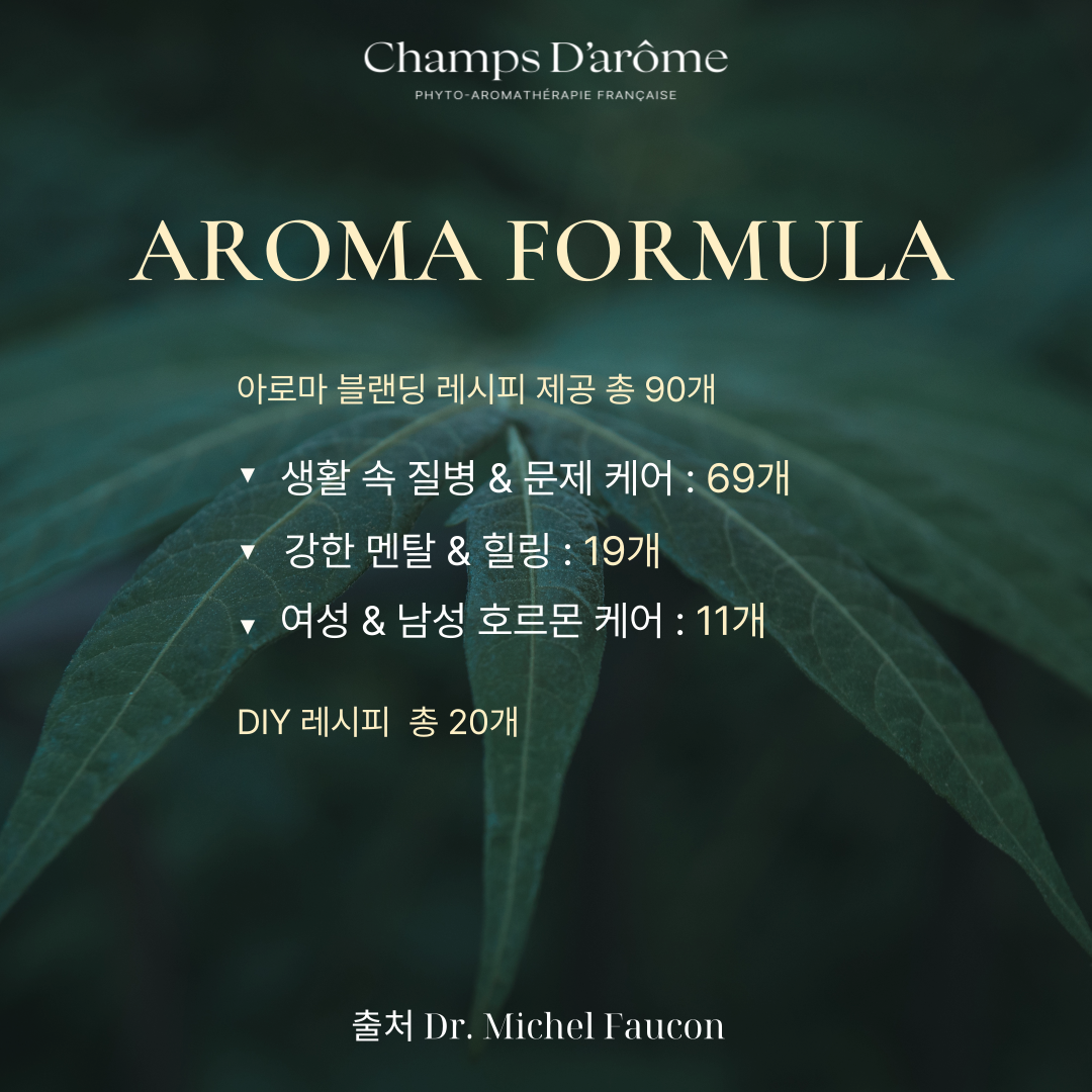 일상생활에서의 신체적, 정신적, 감정적 문제를 프랑스 과학적 메디컬 피토-아로마테라피로 케어 & 관리, 예방할 수 있도록 구성된 70여 개의 실용 포뮬러 (레시피)와 각각 병리학적 특징 및 테라피 솔루션을 실제적으로 제시하며, 각 주제에 부합하는 아로마 제품을 만들며 실습합니다.