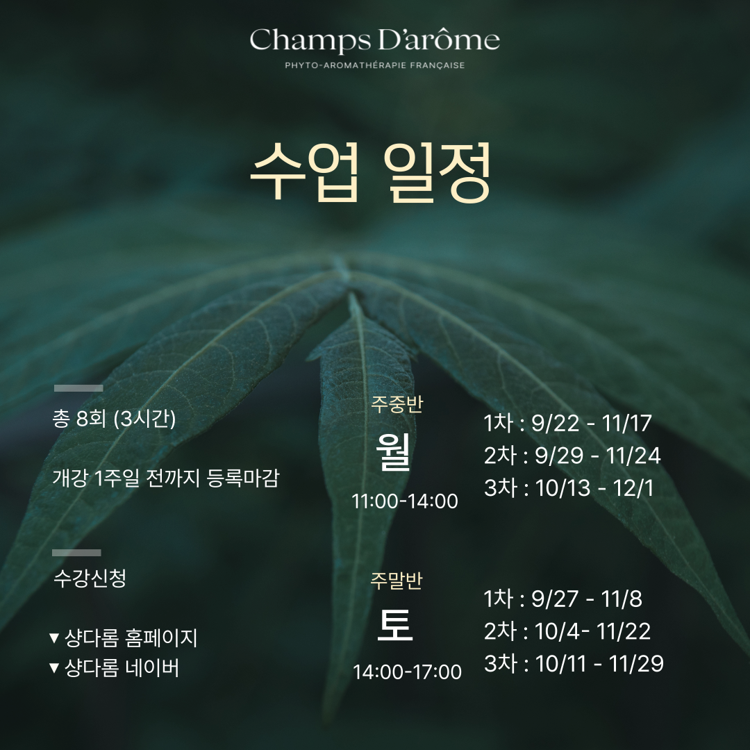 수강료 ㅣ 165만원 (샹다롬 자체 편집 교재, 자격증 응시 & 발급, 수업 중 시향 & DIY 재료비, 부가세 포함)